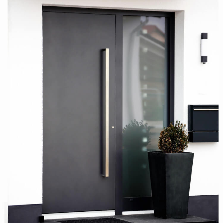 Hierzu stehen Ihnen je nach Türmodell mehrere Sicherheitspakete zur Auswahl. Der Grad des Einbruchschutzes wird in Sicherheitsklassen – auch Schutzklassen genannt – angegeben. Für Eigenheime und Wohngebäude sind allgemein Schutzklassen von RC1N bis RC2 üblich. Qualitätstüren von fensterversand.com verfügen bereits in ihrer Basisausstattung über eine 3-fach-Hakenverriegelung, überdurchschnittlich starke Rahmen sowie Flügelprofile und einen zusätzlichen Aufbohrschutz. Somit bietet die Haustür mit 98x200 cm auch ohne Zusatzkonfiguration einen soliden Grundschutz gegen körperliche Gewalteinwirkung.