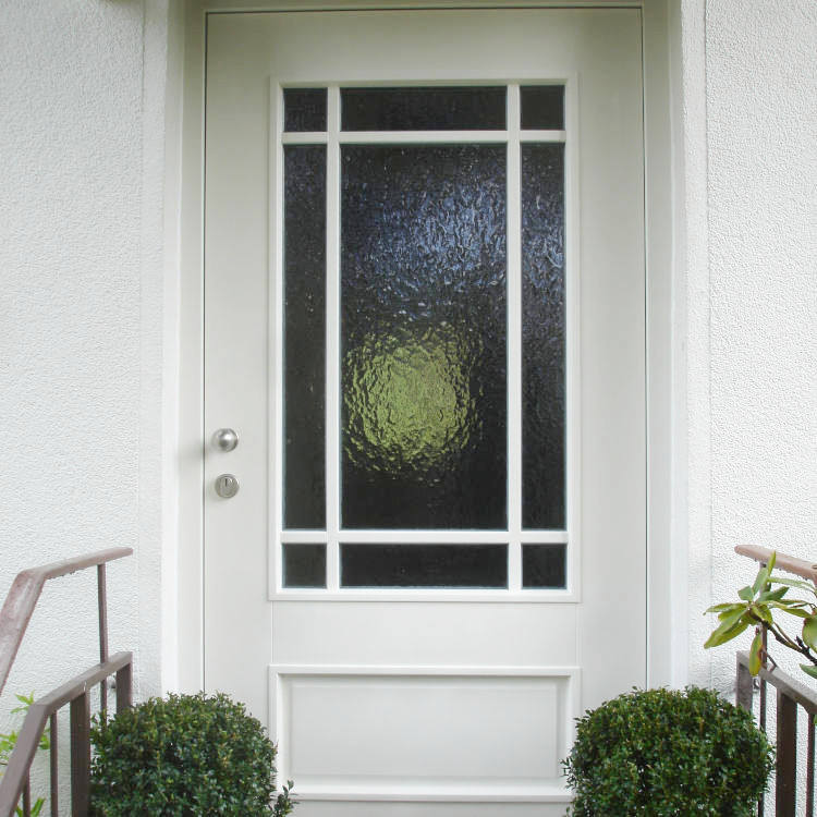 Satiniertes Glas – im Volksmund Milchglas – kann eine schöne Alternative bei der Verwirklichung der Wunschtür darstellen.