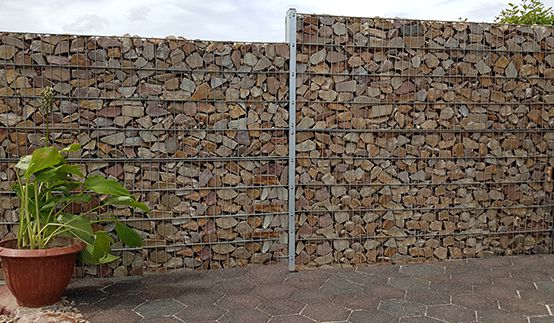 Ähnlich wie bei einem Zaun aus Holz sollte auch hier auf eine Mindesthöhe von 1,8 Metern geachtet werden. Aufgrund ihrer massiven Optik fallen Mauern besonders auf und sollten daher gestalterisch durch Material und Farbe an das Haus und die Umgebung angepasst werden. Eine Mauer bietet einen idealen Sichtschutz, weist jedoch ein großes Problem auf: Auch hier wird der Wind komplett abgebremst, sodass Luftwirbel auf der anderen Seite entstehen. Diese lassen sich aber nicht so leicht wie bei Holz umgehen, sodass Verwirbelungen beinahe unumgänglich sind. Angelehnt an eine Mauer können sogenannte Gabionen aufgestellt werden: Dabei handelt es sich um Körbe aus Draht, die mit Steinen gefüllt sind und somit eine ähnliche Optik aufweisen, jedoch einen Luftaustausch ermöglichen. Als Sichtschutz sind diese ebenfalls geeignet, da eine Höhe von über 150 cm erreicht werden kann. Zudem ist es möglich, sie farbig oder mit integrierter Beleuchtung herzustellen.